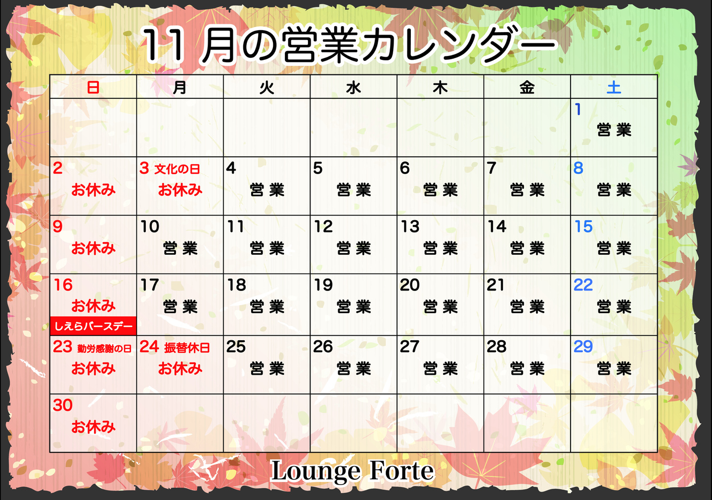 蒲生四丁目でたくさんの方に愛されるお店です♪ ビルの最上階にあって一面がガラス張り!! 落ち着いた雰囲気で居心地バツグン! あなたにもきっと気に入ってもらえるはず♪ 女性スタッフ募集‼ フォルテではお店を一緒に盛り上げていただけるスタッフを募集中です。 詳しくはこちら! 11月の営業予定 【ご案内】 クリックで拡大します アクセス累計 宣伝広告費を大幅削減! 株式会社トライウェブ